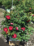 Bright beautiful red 3"+ flowers with dark red highlights and a yellow center. This beautiful climbing rose offer abundant and continuous color throughout late spring and summer. The dark green foliage is glossy, disease resistant and offering a nice contrast to the amazing flowers.